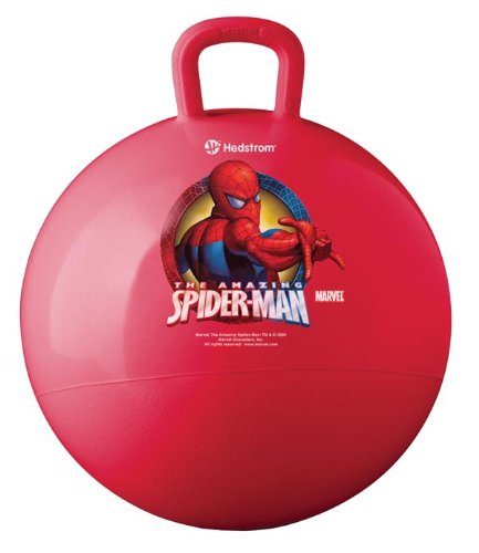 Spiderman Hopper : 15". It is made of Tough heavy gauge vinyl. For indoor or outdoor use.